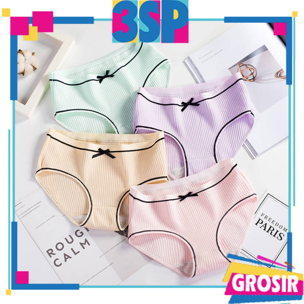 3SP | UW32 Celana Dalam Remaja Wanita Garis Polos Pita List Hitam Fashion Korea Import